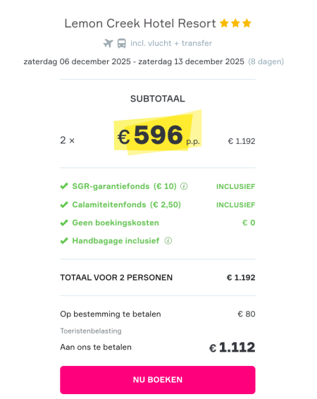 Jullie hoeven geen boekingskosten te betalen.