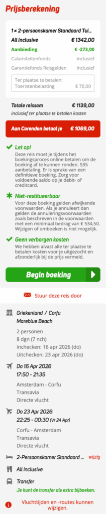 Dit Griekse eiland is een échte must visit. Geniet van de Griekse zon en laat je verrassen door wat dit eiland allemaal voor jullie in petto heeft. Bezoek de mooie stranden, ontdek de gezellige dorpjes en proef de lokale keuken. Of jullie nu willen struinen door het gezellige Corfu-Stad of languit willen liggen op Issos beach… Zowel jong als oud gaat een onvergetelijke vakantie tegemoet op dit prachtige eiland. Verblijf in een fijn complex of boek een welverdiende all inclusive vakantie. Wedden dat jullie niet meer terug naar huis willen?