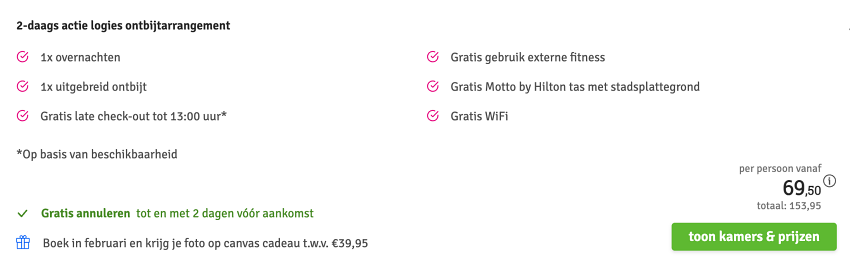 Disclaimer: deze prijs is excl. €14,95 boekingskosten per boeking.