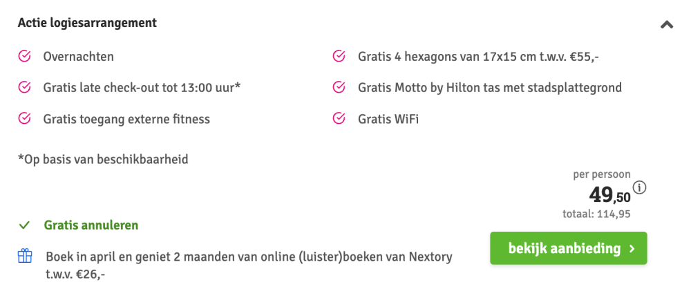 Disclaimer: deze prijs is excl. €14,95 boekingskosten per boeking.