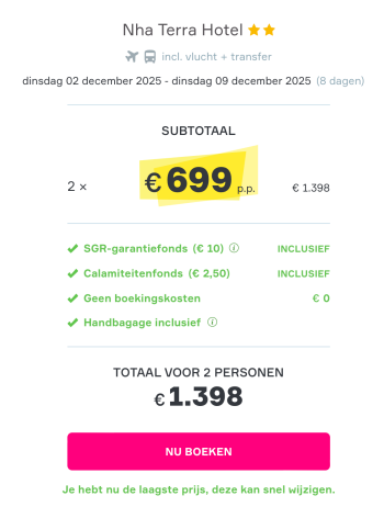KaapverdiëEen kleinschalig adresje op het Kaapverdische eiland Sal: het fijne Nha Terra. Dit hotel ligt direct aan de hoofdstraat van Santa Maria, waar je veel restaurants en winkels kunt vinden. Liever een dagje op het strand? Ook daar sta je binnen een paar stappen. Een toplocatie dus! Zin om na een dag af te koelen? Dan neem je een duik in het zwembad en kun je een drankje drinken op het terras, ideaal. Dit hotel is de ideale keuze als je het échte Kaapverdië wil beleven, maar ook wil relaxen tijdens een ontspannen zonvakantie.