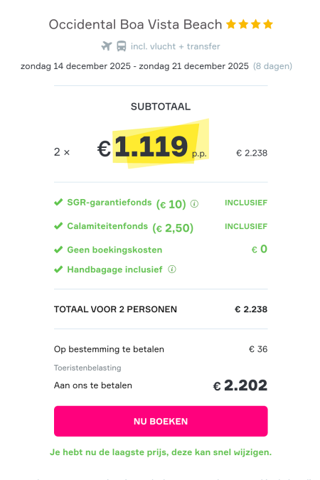 KaapverdiëOok zo’n zin in een dosis zon, zee en strand? Dan zijn jullie bij Occidental Boa Vista Beach helemaal aan het juiste adres. Meerder zwembaden, gezellige bars & restaurants, een privéstrand en uitgebreide wellnessfaciliteiten… Dit resort heeft het allemaal! Je waant je hier in een klein dorp met gezellige straatjes. Hier verblijven jullie in ruime en moderne kamers met een fijn uitzicht op het zandstrand van Praia de Chaves. Dus bestel die cocktail maar en neem een verfrissende duik in het zwembad… Dit wordt maximaal genieten!