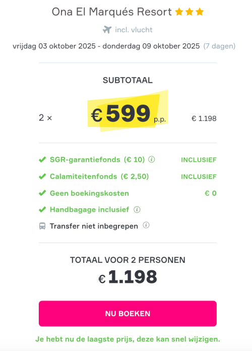 Jullie hoeven geen boekingskosten te betalen.