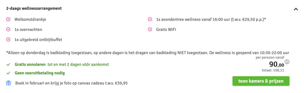 Disclaimer: deze prijs is excl. €14,95 boekingskosten per boeking.