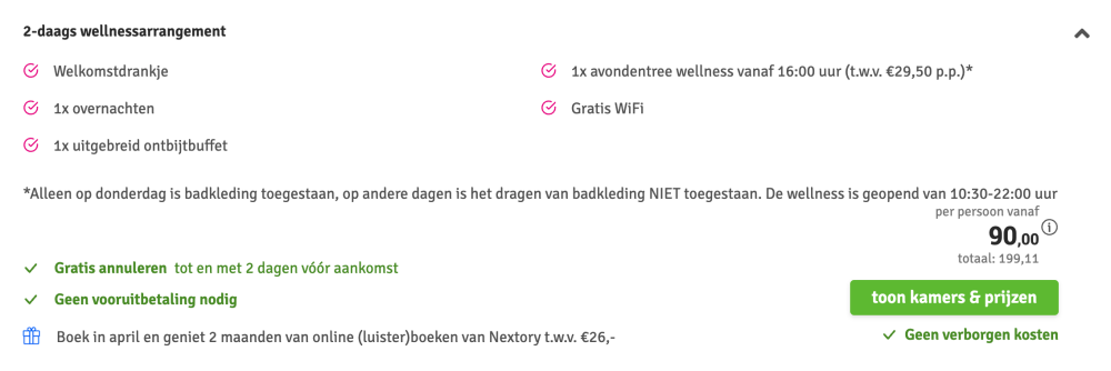 Disclaimer: deze prijs is excl. €14,95 boekingskosten per boeking.
