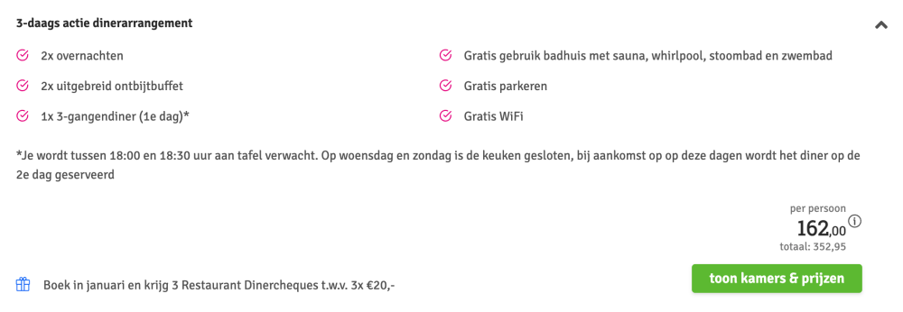 Disclaimer: deze prijs is excl. €14,95 boekingskosten per boeking.