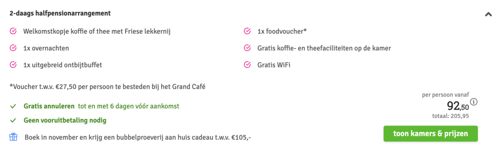 Disclaimer: deze prijs is excl. €14,95 boekingskosten per boeking.