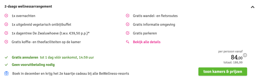 Disclaimer: deze prijs is excl. €14,95 boekingskosten per boeking.