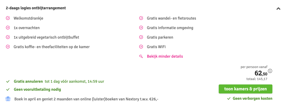 Disclaimer: deze prijs is excl. €14,95 boekingskosten per boeking.