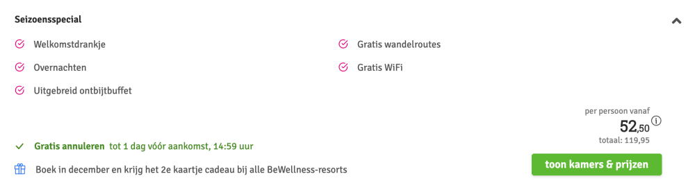Disclaimer: deze prijs is excl. €14,95 boekingskosten per boeking.