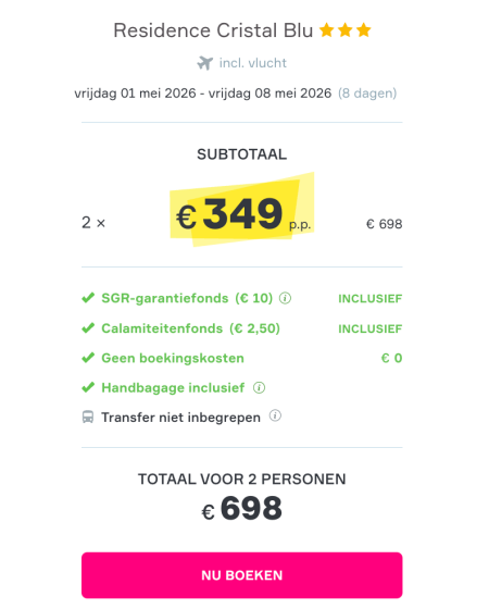 Jullie hoeven geen boekingskosten te betalen.