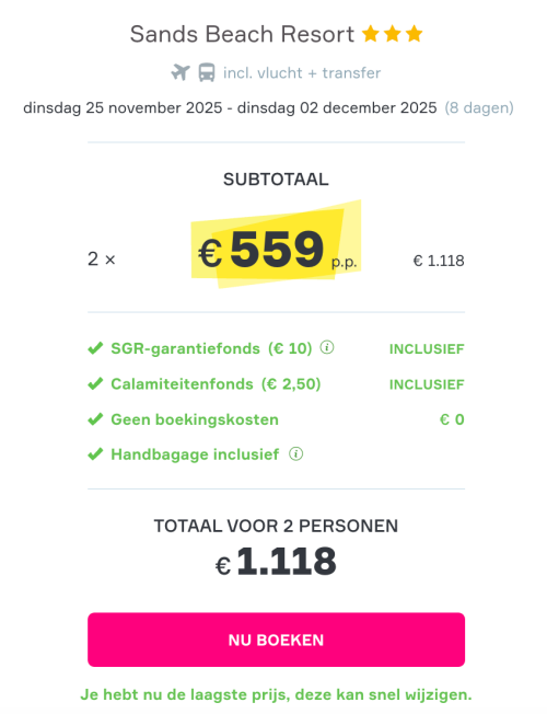 Jullie hoeven geen boekingskosten te betalen.