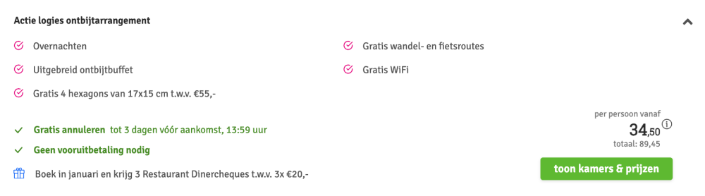 Disclaimer: deze prijs is excl. €14,95 boekingskosten per boeking.