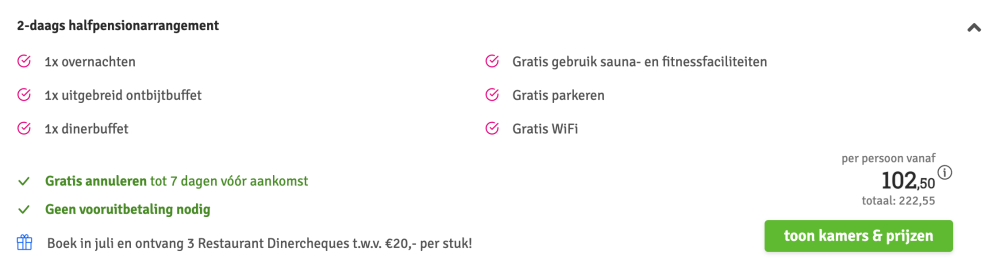 Disclaimer: deze prijs is excl. €14,95 boekingskosten per boeking.