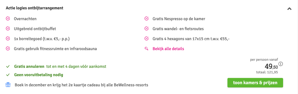 Disclaimer: deze prijs is excl. €14,95 boekingskosten per boeking.