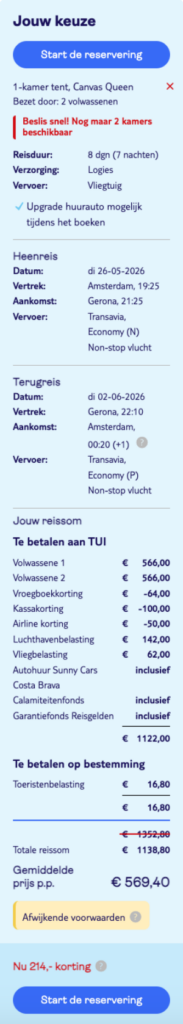 Jullie hoeven geen boekingskosten te betalen.