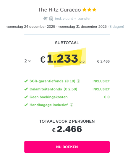 CuraçaoSlapen in een oude ijsfabriek? Dat kan bij The Ritz Village! Dit hotel is een klein dorpje midden in het prachtige Willemstad. Het heeft een leuk straatje met een eigen zwembadbar, minimarkt én wasserette. En het leuke van allemaal: wist je dat je bij het in- en uitchecken een ijsje krijgt? Wat cool! Wil je lekker ontspannen? Dat kan bij het bubbelbad of zwembad. Liever wat actiefs doen? Wandel dan naar het gezellige Pietermaai of huur een auto en rij naar de mooiste plekken op Curaçao.