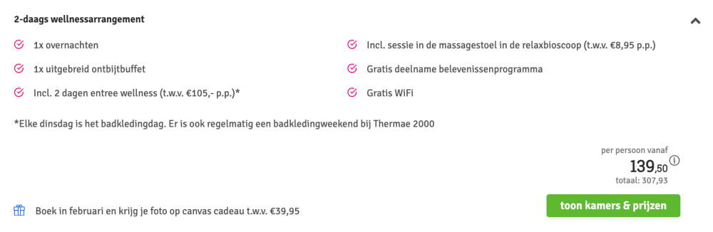 Disclaimer: deze prijs is excl. €14,95 boekingskosten per boeking.