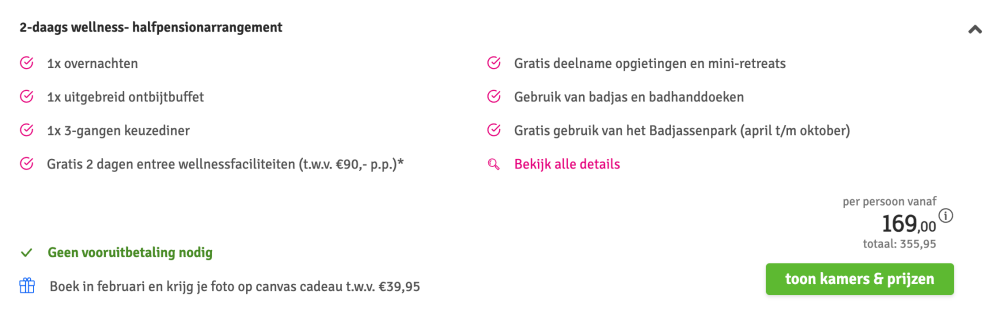 Disclaimer: deze prijs is excl. €14,95 boekingskosten per boeking.