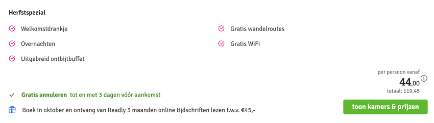 Disclaimer: deze prijs is excl. €14,95 boekingskosten per boeking.