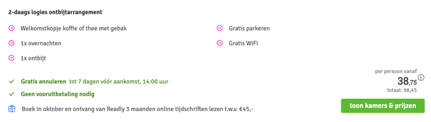 Disclaimer: deze prijs is excl. €14,95 boekingskosten per boeking.