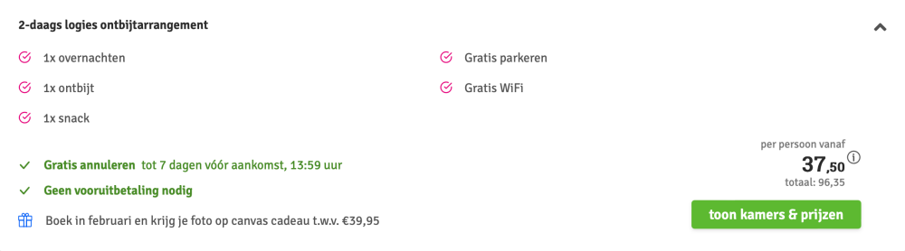 Disclaimer: deze prijs is excl. €14,95 boekingskosten per boeking.