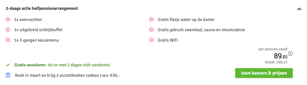 Disclaimer: deze prijs is excl. €14,95 boekingskosten per boeking.