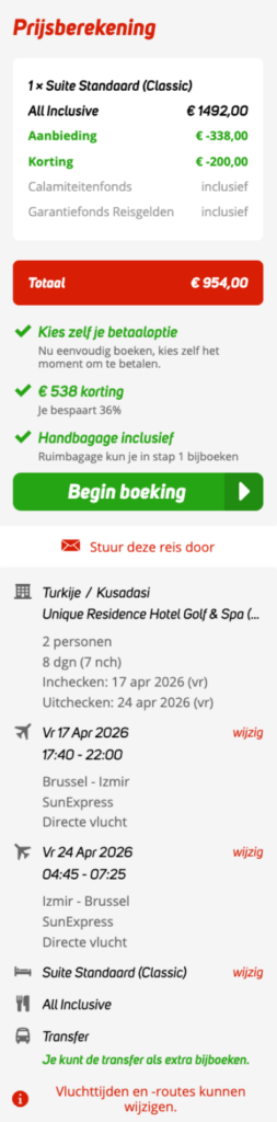 TurkijeHet luxe Unique Residence Hotel Golf & Spa in Turkije is een feestje voor jong en oud! Dit hotel beschikt onder andere over heel wat zwembaden (met glijbanen), een wellness en verschillende toffe activiteiten. Geniet van de zon op een ligbed, drink een verkoelend drankje aan één van de 5 bars of trakteer jezelf op een lekkere massage. Zin om meer van de omgeving te zien? Maak dan een uitstapje naar het strand of het centrum van Kusadasi. ’s Avonds kunnen jullie weer aanschuiven in het restaurant voor een heerlijk diner. Genieten maar…