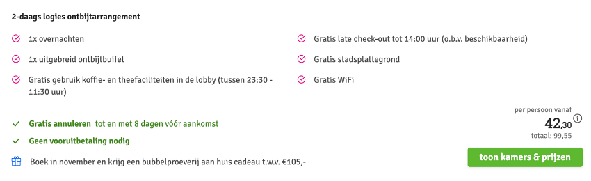 Disclaimer: deze prijs is excl. €14,95 boekingskosten per boeking.