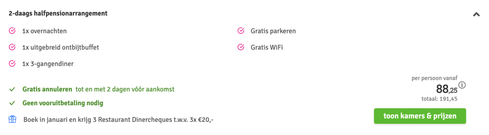 Disclaimer: deze prijs is excl. €14,95 boekingskosten per boeking.