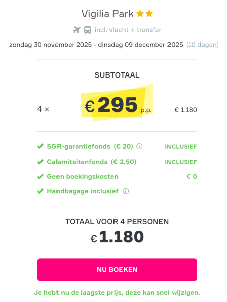 TenerifeHeb jij zin in een vakantie vol plezier, ontspanning én zon? Dan moet je bij Vigilia Park op Tenerife zijn! Dit hotel ligt in het kloppende hart van Puerto de Santiago. Het heeft een rustige ligging, maar ligt toch dicht bij het strand en restaurantjes. Je kunt een heerlijke duik nemen in het zwembad én genieten van het uitzicht over de kust van Tenerife. Het is de perfecte plek voor jong en oud; er is voldoende te doen… Van een speeltuin tot sportfaciliteiten, je gaat je er niet snel vervelen!
