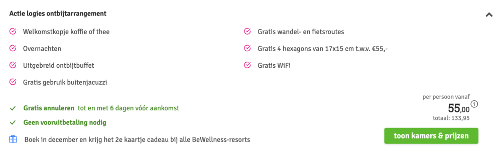 Disclaimer: deze prijs is excl. €14,95 boekingskosten per boeking.