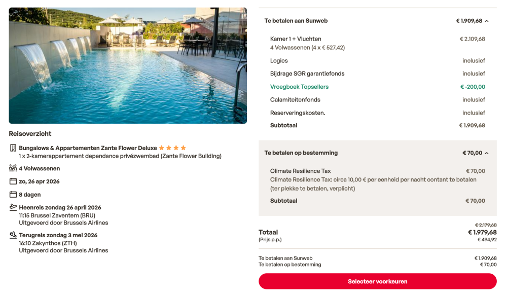 De boekingskosten zijn bij de prijs inbegrepen.