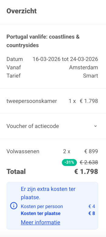 PortugalMetershoge kliffen, beukende golven, groene olijfboomgaarden… en jij in je eigen camper. Klinkt goed? Begin dan je onvergetelijke roadtrip in Lissabon, waar je geniet van de Portugese sfeer tussen historische gebouwen en schattige cafés, met de zee altijd in zicht. Dan is het tijd om je camper op te halen. In je huis op vier wielen scheur je door de uitgestrektheid van de Alentejo, waar je kastelen, wijngaarden, stranden en surfspots verkent. Is de Algarve jouw place to be? Geniet dan van een leven vol vrijheid onder de Portugese zon, voordat je weer terugkeert naar Lissabon om je avontuur af te sluiten. Vanlife’s the best life!