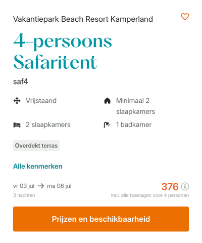 NederlandEen vakantie in Zeeland direct aan het strand… Hallo vakantiegevoel! Ga een heerlijk verblijf tegemoet bij Beach Resort Kamperland. Dit populaire strandresort ligt in het Zeeuwse Kamperland en heeft een geweldige locatie aan het strand. Maak hier dus zeker gebruik van tijdens jullie vakantie! Valt het weer helaas tegen? No problemo! Beach Resort Kamperland heeft namelijk ook een binnenzwembad mét een glijbaan en golfslagbad. Daarnaast vinden jullie op het park een eigen beach club, een indoor speeltuin, een fietsverhuur, minigolf, lasergame en nog veel meer.