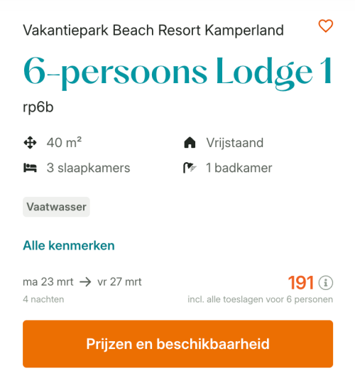 NederlandEen vakantie in Zeeland direct aan het strand… Hallo vakantiegevoel! Ga een heerlijk verblijf tegemoet bij Beach Resort Kamperland. Dit populaire strandresort ligt in het Zeeuwse Kamperland en heeft een geweldige locatie aan het strand. Maak hier dus zeker gebruik van tijdens jullie vakantie! Valt het weer helaas tegen? No problemo! Beach Resort Kamperland heeft namelijk ook een binnenzwembad mét een glijbaan en golfslagbad. Daarnaast vinden jullie op het park een eigen beach club, een indoor speeltuin, een fietsverhuur, minigolf, lasergame en nog veel meer.