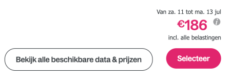 Disclaimer: deze prijs is exclusief heffingen en verplichte toeristenbelasting (op basis van het aantal personen en aantal nachten).