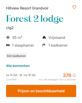 BelgiëTijd voor een vakantie in de prachtige Belgische Ardennen. Word wakker van het getjilp van de vogels in de bomen en geniet van de eerste zonnestralen die in jullie hotelkamer of lodge binnenglippen. In de omgeving vinden jullie een prachtig heuvellandschap, dus natuurliefhebbers zitten hier helemaal op hun plek. Voor een lokale specialiteit kunnen jullie terecht in het restaurant op het park. Zelf kokkerellen in jullie lodge kan natuurlijk ook! Jullie komen hier weer helemaal tot rust…