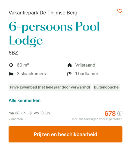 NederlandWauw! Landal De Thijmse Berg in het Utrechtse Rhenen is klaar voor jullie komst. Op dit park vinden jullie onder andere een openluchtzwembad en een spraypark waar de kids lekker kunnen afkoelen (geopend van april tot oktober). Verder kunnen jullie hier genieten van een binnen- en buitenspeeltuin, een tennisbaan en prachtige vakantiewoningen. Van unieke cottages tot luxe lodges met een bubbelbad, sauna of zelfs een eigen zwembad! Zin in een lekker hapje eten? Wandel dan naar Brasserie Sorella’s. Natuurlijk wil je ook genoeg van de omgeving ontdekken. Huur fietsen en geniet van een ontspannen fietstocht of bezoek Nationaal Park Utrechtse Heuvelrug. Je leest het al: hier hoef je je niet te vervelen.
