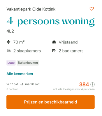 NederlandMidden in het Twentse landschap vinden jullie het nieuwe Landal Olde Kottink. Jullie vinden hier stijlvol ingerichte vakantiehuisjes en een luxe wellness waar je als parkgast gratis gebruik van kunt maken. Dat is pas genieten! Maak ’s ochtends gebruik van de broodjesservice, huur een fiets om de natuurrijke omgeving te verkennen en kom weer helemaal tot jezelf. Een verblijf op dit kleine vakantiepark is de perfecte manier om je weekend in te gaan…