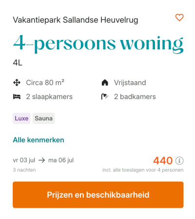 NederlandMidden in het groene Twente, rondom een prachtig recreatiemeer, vinden jullie het gezellige Sallandse Heuvelrug. Natuurliefhebbers zullen hier hun ogen uitkijken! Op het park vinden jullie verschillende luxe huisjes waar jullie helemaal tot rust zullen komen… Zo beschikken sommige accommodaties zelfs over een eigen sauna en bubbelbad. Zin om erop uit te gaan? Maak een wandeling door Nationaal Park Sallandse Heuvelrug en ontdek de natuurrijke omgeving. Jullie kunnen gratis gebruik maken van de faciliteiten op het naastgelegen park de Hoge Hexel.