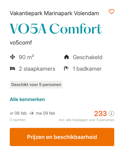 NederlandOntdek het pittoreske Volendam tijdens een verblijf op Marinapark Volendam! Dit kleinschalige vakantiepark is volledig gebouwd in de kenmerkende Volendamse stijl en ligt direct naast het dorp. Je kunt dus lopend alle hotspots ontdekken! Het park heeft overigens een prachtige locatie aan de jachthaven van Voledam en beschikt onder andere over een binnenzwembad, meerdere restaurants, een fietsverhuur en een kleine supermarkt. Ga jij binnenkort Volendam ontdekken?