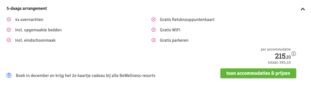 Disclaimer: deze prijs is excl. €14,95 boekingskosten per boeking.