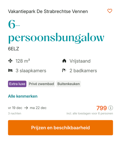 NederlandVakantiepark De Strabrechtse Vennen is één van de nieuwste parken van Landal. Dit moderne vakantiepark heeft een prachtige ligging rondom een recreatiemeer en is een heerlijke plek voor een vakantie in eigen land. Zoals de naam al verklapt ligt het park ook vlak bij natuurpark De Strabrechtse Heide en Nationaal Park De Groote Peel. Pak die wandelschoenen dus maar in! Ook op het park kun je je overigens prima vermaken. Zo is er onder andere een overdekt zwembad, een restaurant, een klimwand, een indoor speelplaats voor de kleintjes en zelfs een padelbaan.