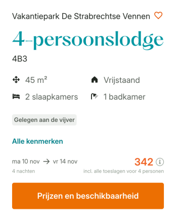 NederlandVakantiepark De Strabrechtse Vennen is één van de nieuwste parken van Landal. Dit moderne vakantiepark heeft een prachtige ligging rondom een recreatiemeer en is een heerlijke plek voor een vakantie in eigen land. Zoals de naam al verklapt ligt het park ook vlak bij natuurpark De Strabrechtse Heide en Nationaal Park De Groote Peel. Pak die wandelschoenen dus maar in! Ook op het park kun je je overigens prima vermaken. Zo is er onder andere een overdekt zwembad, een restaurant, een klimwand, een indoor speelplaats voor de kleintjes en zelfs een padelbaan.
