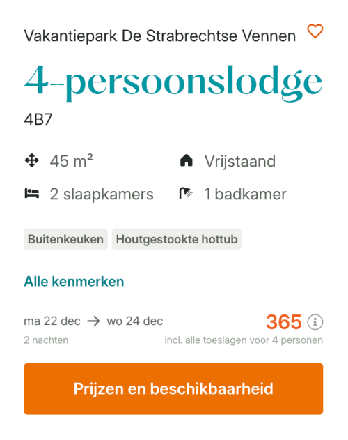 NederlandVakantiepark De Strabrechtse Vennen is één van de nieuwste parken van Landal. Dit moderne vakantiepark heeft een prachtige ligging rondom een recreatiemeer en is een heerlijke plek voor een vakantie in eigen land. Zoals de naam al verklapt ligt het park ook vlak bij natuurpark De Strabrechtse Heide en Nationaal Park De Groote Peel. Pak die wandelschoenen dus maar in! Ook op het park kun je je overigens prima vermaken. Zo is er onder andere een overdekt zwembad, een restaurant, een klimwand, een indoor speelplaats voor de kleintjes en zelfs een padelbaan.