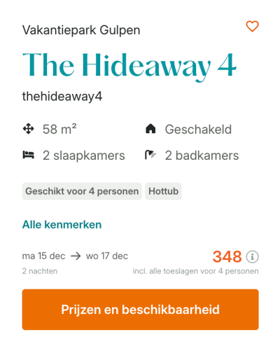 NederlandEen autoluw park met prachtige lodges: welkom bij Roompot Gulpen in Zuid-Limburg! Dit vakantiepark is de juiste keuze voor de hele familie. Lekker uit eten bij de brasserie, wandelen in de prachtige natuur of een spelletje in één van de mooie vakantiehuisjes: een verblijf bij Roompot Gulpen voelt echt als vakantie. De kids kunnen zich uren vermaken in de verschillende speeltuinen of bij de animatie van de Kids Club, ideaal. In de buurt zijn er leuke uitstapjes te plannen zoals het Duitse Aken of shoppen bij Maasmechelen Village. Uiteraard mag een bezoekje aan de grotten in Valkenburg natuurlijk ook niet ontbreken. Een heerlijk verblijf voor jong en oud!