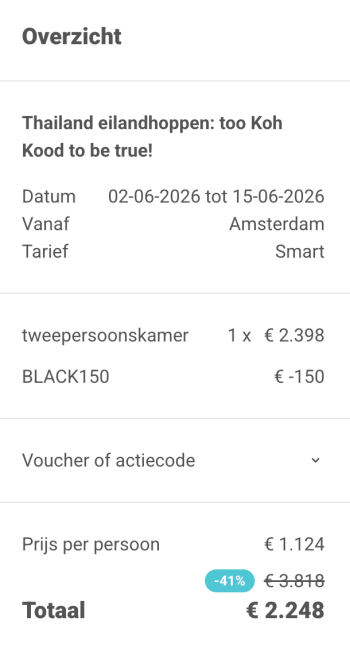 ThailandKlaar voor eilandvibes, streetfood en helderblauw water? Pak dan je koffers… Je rondreis door Thailand begint midden in het centrum van Bangkok! Tussen rooftops, tempels en nachtmarkten leer je de hoofdstad van zijn luidste en lekkerste kant kennen. Daarna wordt het rustig: kristalhelder water, witte zandstranden en een prachtige natuur wachten op je op Koh Kood. Snorkelen, wandelen of gewoon niets doen? Jij beslist. Je volgende stop is Koh Chang, de perfecte combi van jungle en beachlife met talloze watervallen, wandelpaden en verborgen baaien. Achteraf wil je eigenlijk maar één ding: meteen teruggaan. Klinkt dit als jouw vibe? Dan let’s go, Thailand wacht!