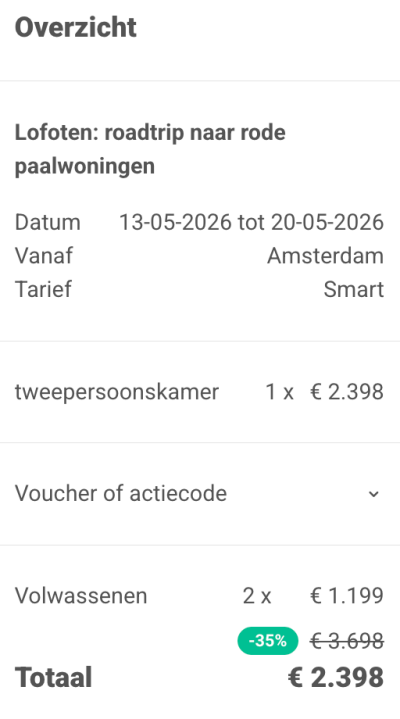 Heb je er altijd al van gedroomd naar de magische Lofoten te reizen? Dan is het tijd om deze droom uit te laten komen! Begin je roadtrip in het noorden van Noorwegen, waar je langs lange fjorden, schilderachtige bergpanorama’s en relaxte zandstranden. Je komt in een kleine, nieuwe wereld terecht met rode vissershuisjes op palen tegen de rotsen, vis die aan de poolwind wordt gedroogd, heldere fjorden met metershoge kliffen, typisch Scandinavische dorpjes en de hartelijkheid van de Noren. Tot slot ervaar je nog de pure Noorse levensstijl in Tromsø, de meest noordelijke stad van het land. En het beste? Met je voet op het gaspedaal verken je alle haltes van je avontuur, zodat je geen enkel hoogtepunt hoeft te missen.